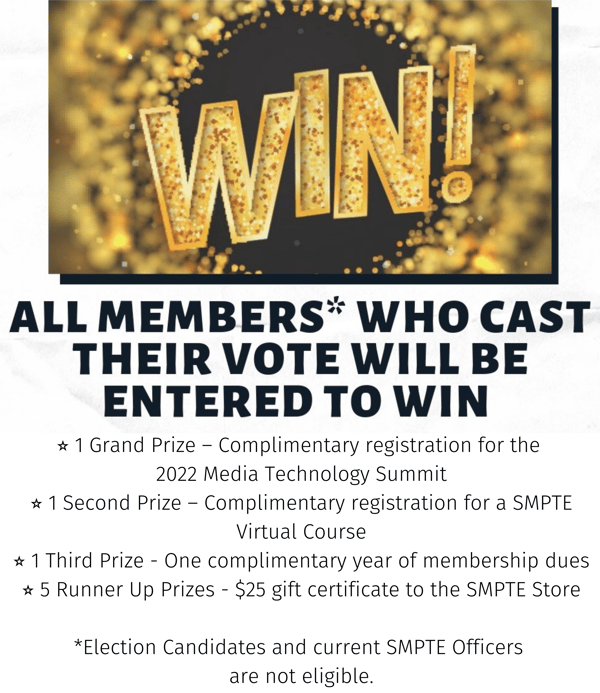 For SMPTE policies and procedures regarding Society Elections, including determination and appeal of election results, please see Section 9.5 of the Governance Operations Manual.