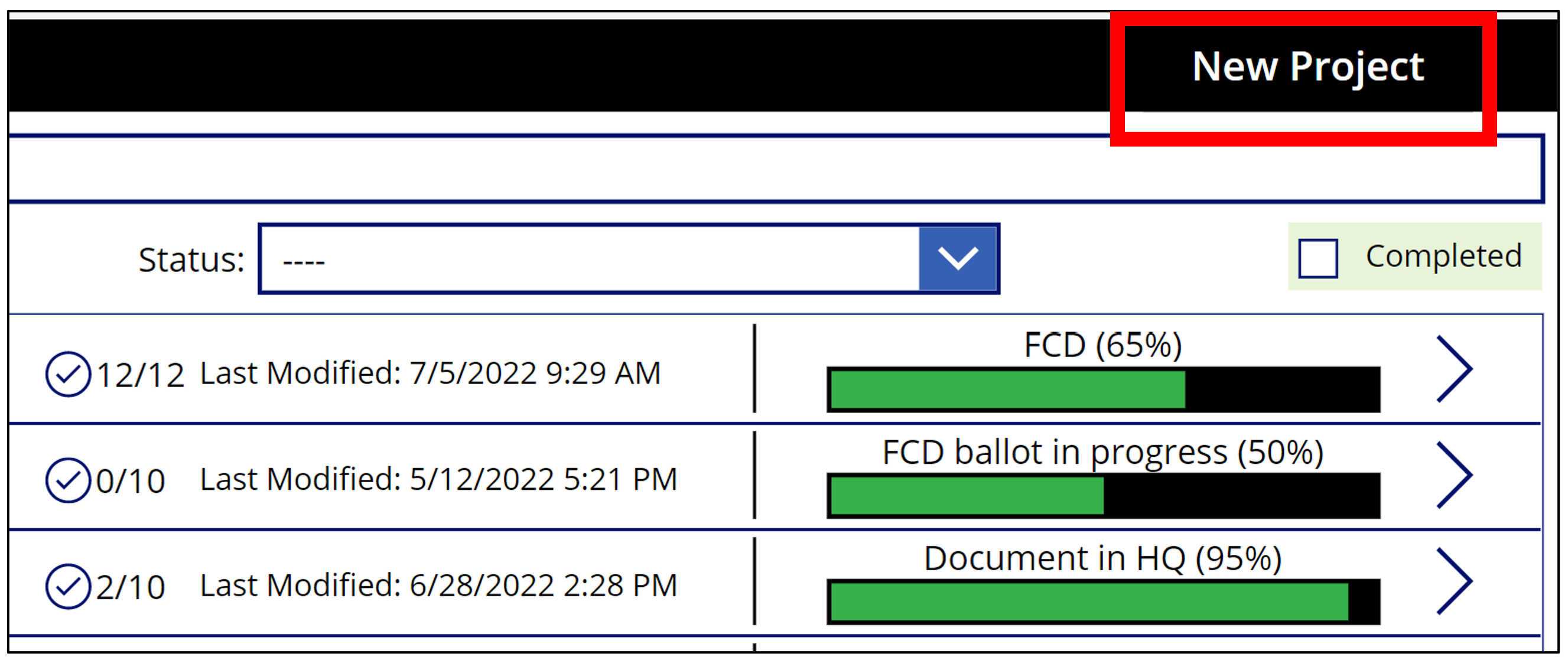 All fields marked with an asterisk are required. The status field will only populate if a project document type is selected. Different buckets can be selected for different project document types.