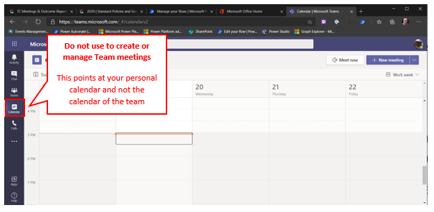 - All SC members are advised that they have to create, update or cancel all meetings for a team in the “Calendar” tab in the “General” channel for the that team. Do not use the general Teams calendar on the left side of the Teams window.