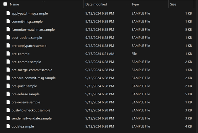 Figure 3 — Hooks Folder Showing pre-commit File
