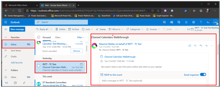 - The meeting invite will also appear in the group inbox in outlook under groups if you are a member of the team