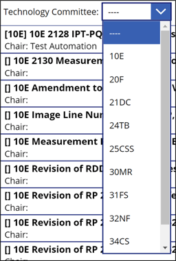Select a technology committee from the dropdown menu to show only projects within that technology committee.