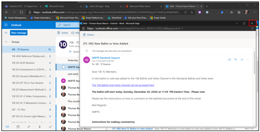 - Click on the X in the upper right corner of the email window to close it.