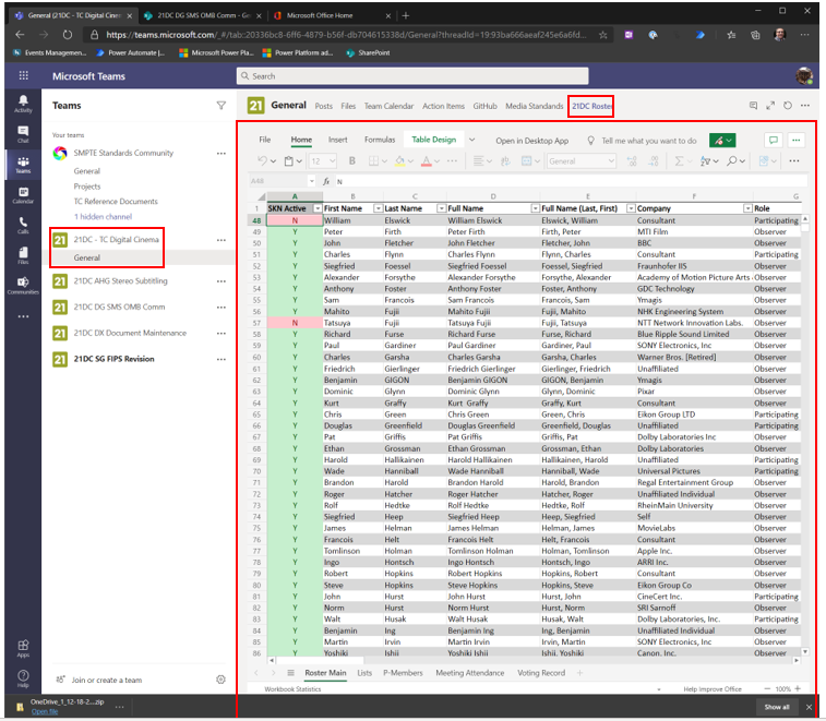 - Instructions on how to use the roster spreadsheet can be found under the SMPTE Standards Community team under the “Standards Information” channel. Click on the “Files” tab and navigate to “Migration Documents” folder and open SKN-TCRosterSheet-UserGuide-rev20201216.docx.