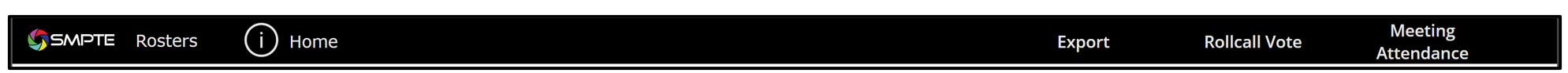 At the top of the screen is the navigation panel. The “i” icon is a link to an information page. The subtext on the right of the “i” icon will describe your current path in the app. Additional navigation or functional buttons are available on the right. The Export button will export a roster to your SMPTE OneDrive. A link will be emailed to you with the location of the exported file.
