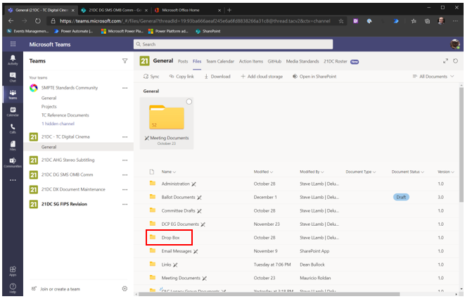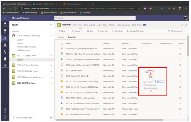 Alternatively, you can also upload your documents through Microsoft SharePoint. Access the document folder you want to upload a document to and drag and drop your fill into the folder. Please be aware that some folders may not allow you to upload documents to. TC and WG only allow file upload to the Drop Box.