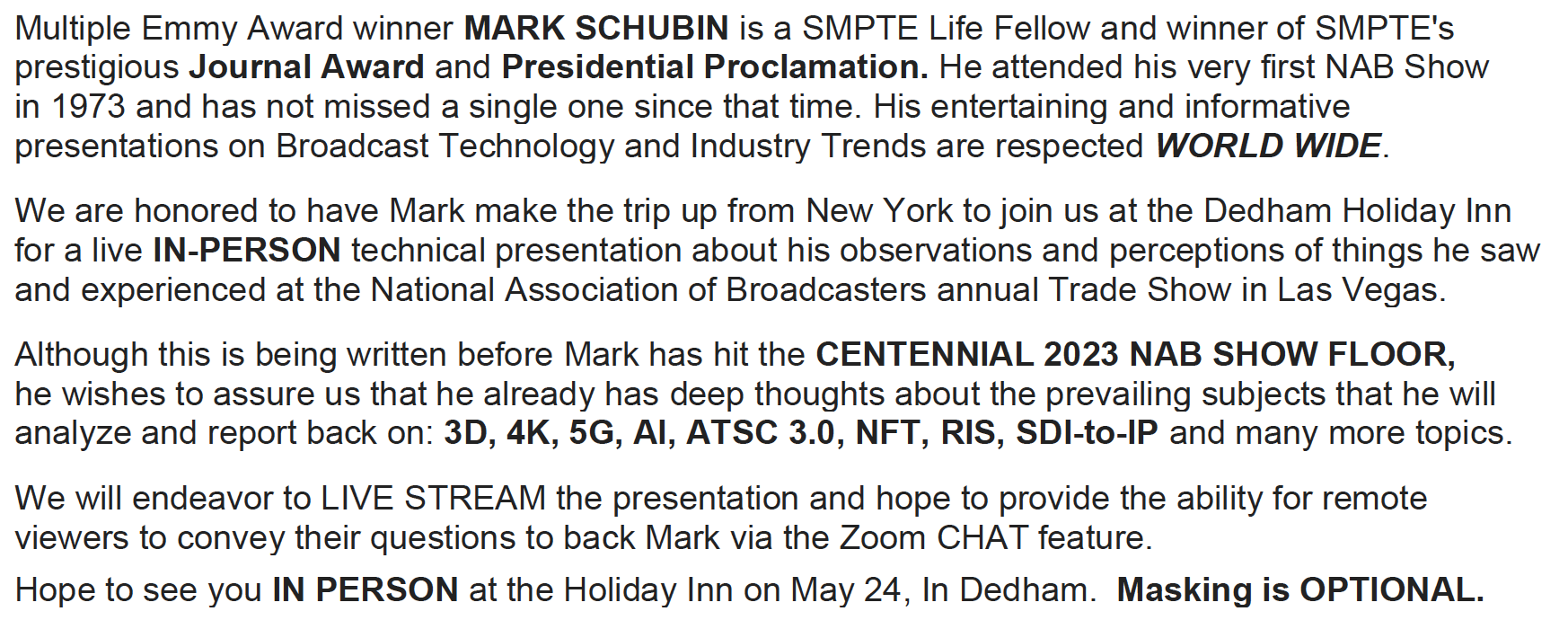 Special thanks to SMPTE LIFE FELLOW MARK SCHUBIN for this special technical presentation.