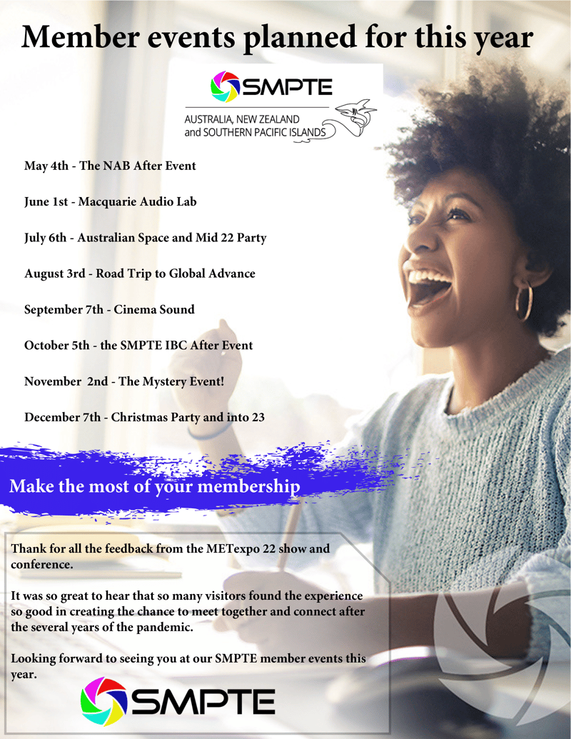 Our heritage is in the Australian section that was founded in 1971. Since 1984 this SMPTE Section has been delivering a world-class media show and conference in Sydney that has become a biennial must-visit event for technology professionals and engineers.